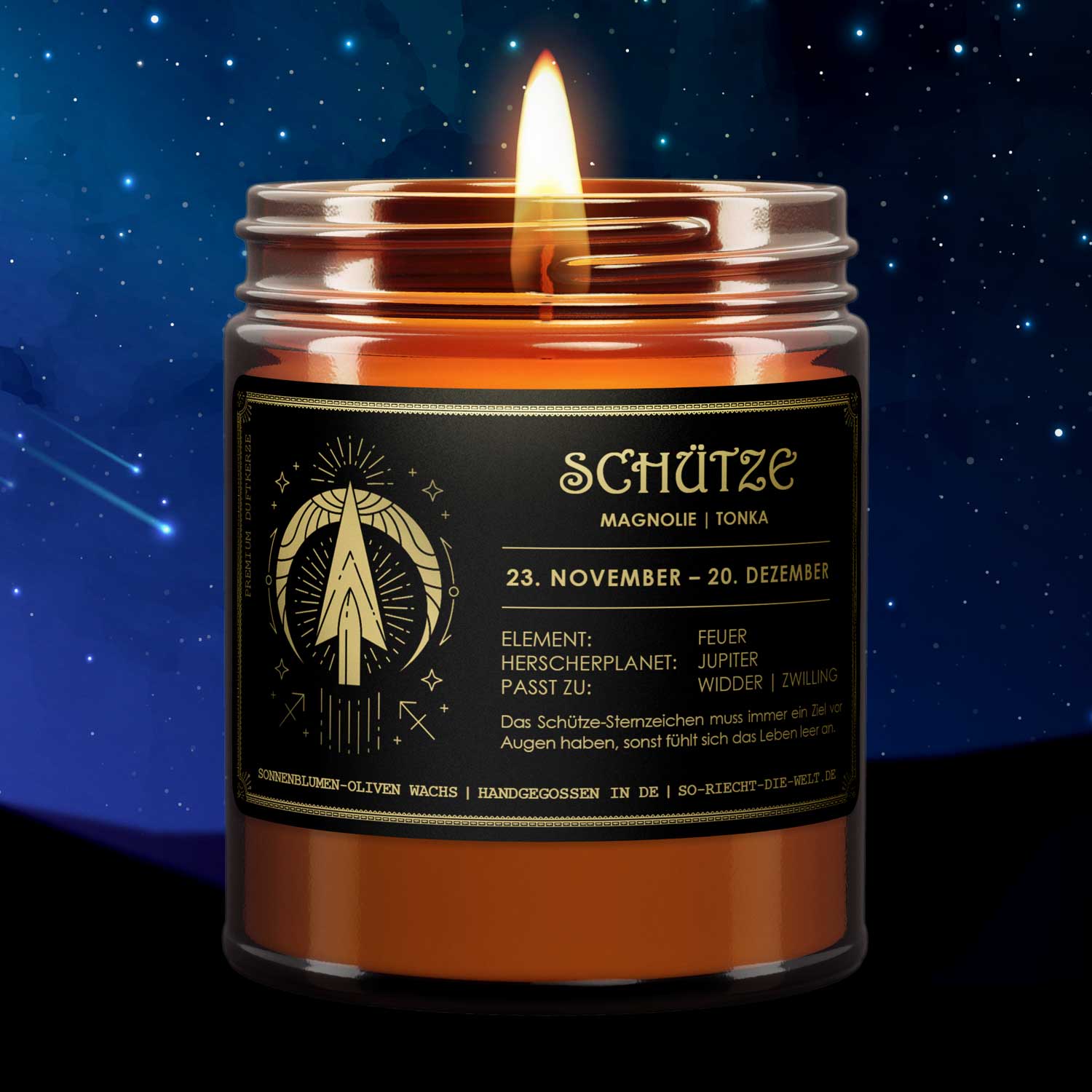 Strēlnieka zodiaka svece – magnolija un tonka.