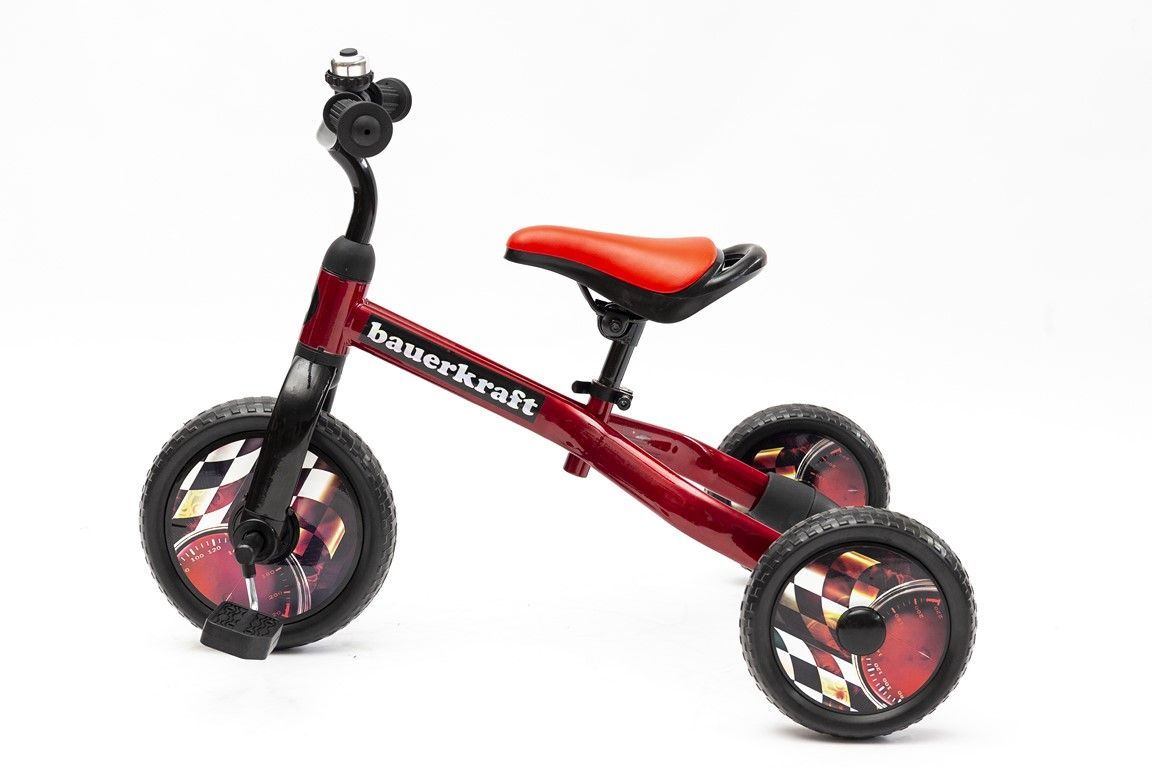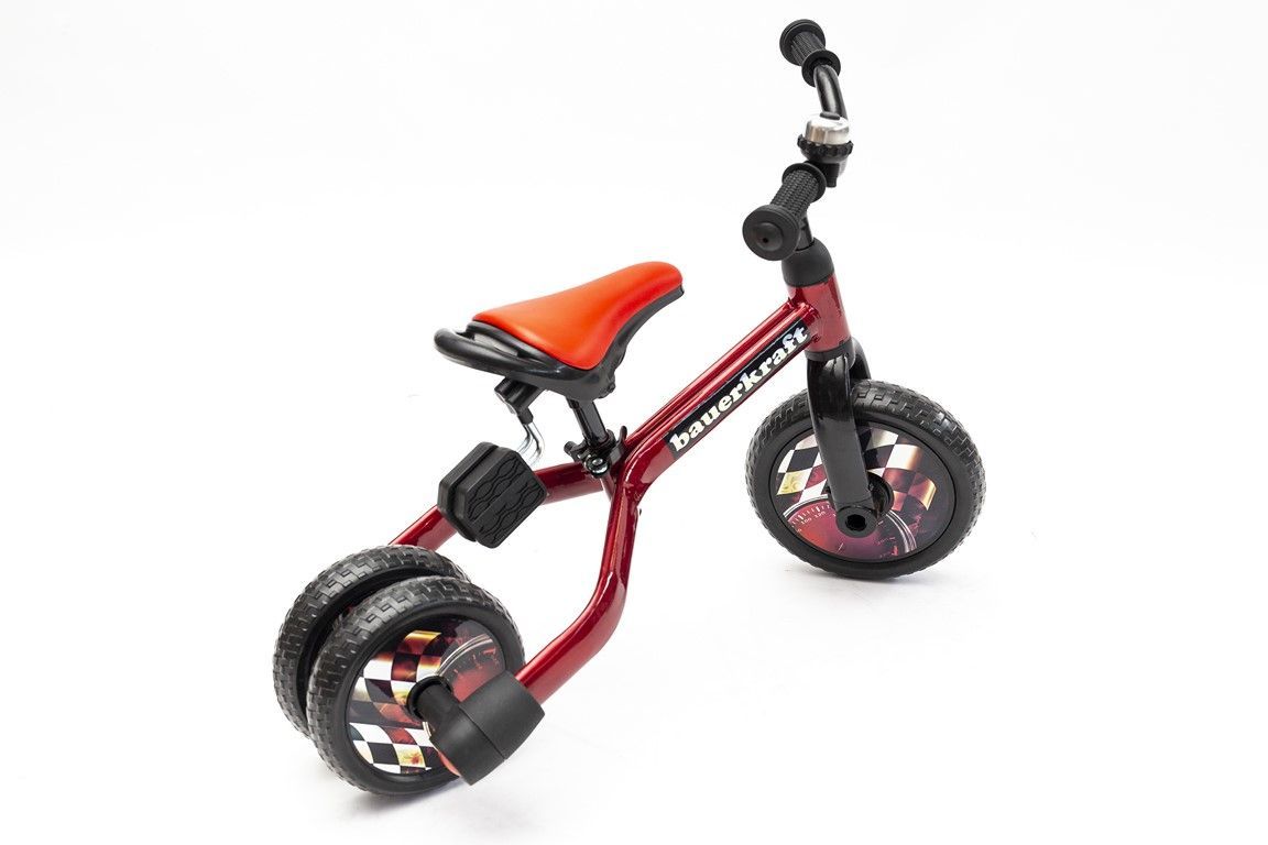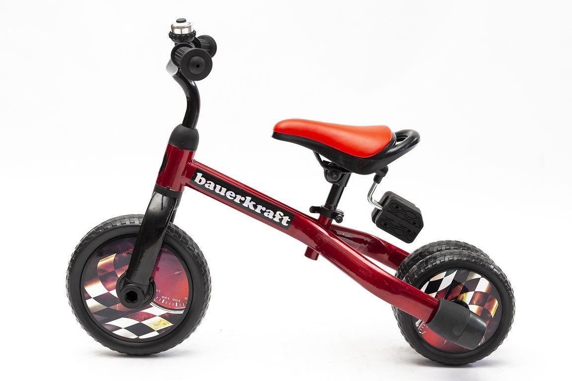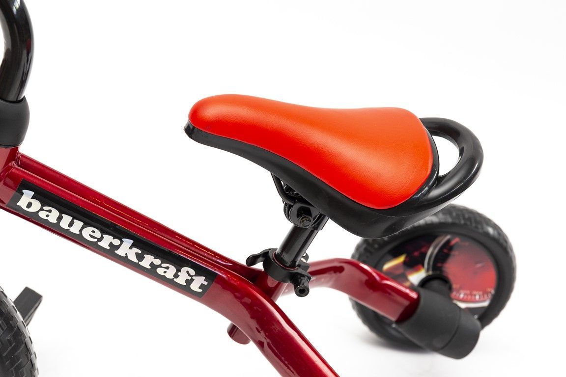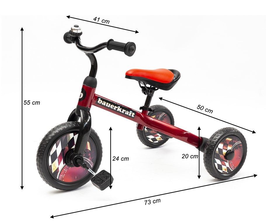 Bauerkraft 3-in-1 trīsriteņu skrejvelosipēds sarkanā krāsā ir ideāla izvēle mazākajiem bērniem, kuri sāk savu piedzīvojumu ar braukšanu. Pateicoties savai daudzfunkcionalitātei, šo velosipēdu var viegli pārveidot par klasisku skrejvelosipēdu. Stabila trīsriteņu konstrukcija nodrošina lielisku līdzsvaru un drošību, kas veicina bērna pašapziņu jaunu prasmju apgūšanā. Augstas kvalitātes izgatavošanas materiāli, tostarp putu riteņi, nodrošina komfortablu braukšanu, turklāt riteņi ir izturīgi pret caurumiem un nav jāpiepūš.